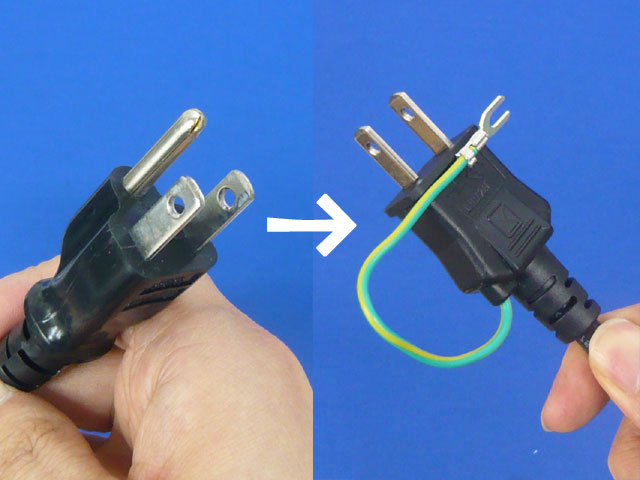 3ËÜΩ¤Ã¤Æ¤ëAC¥×¥é¥°¤ò¥¢¡¼¥¹ÀþÉÕ¤Î2¥Ô¥ó¤ËÊѤ¨¤ë¤È¡£