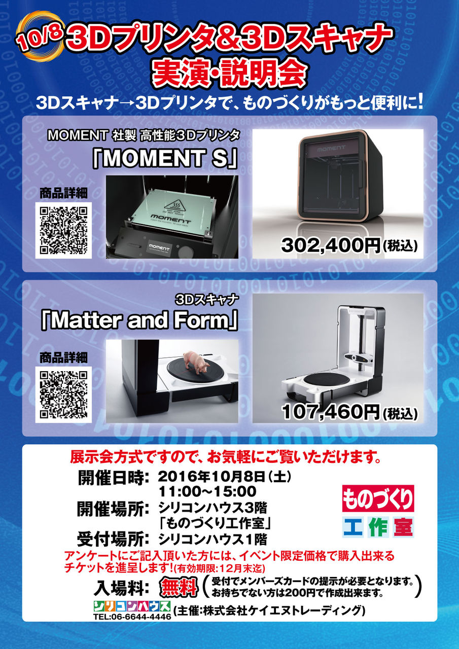 Íè¤ë10/8(ÅÚ)¤Ë¥·¥ê¥³¥ó¥Ï¥¦¥¹£³³¬¤Î¡Ö¤â¤Î¤Å¤¯¤ê¹©ºî¼¼¡×Æâ¤Ç£³£Ä¥×¥ê¥ó¥¿¤È£³£Ä¥¹¥¥ã¥Ê¤Î¼Â±é¤ÈÀâÌÀ¤òʹ¤¯¤³¤È¤¬½ÐÍè¤ë¥¤¥Ù¥ó¥È¤ò³«ºÅ¤·¤Þ¤¹¡ª