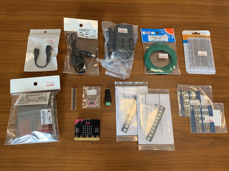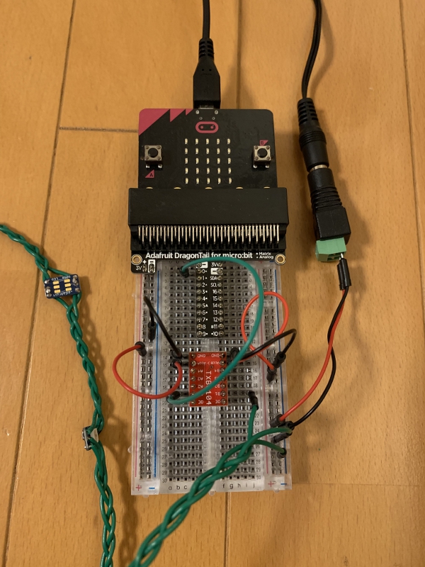 ÅŸ»¤ÏAC¥¢¥À¥×¥¿¡¼¤Î5V¤Ç¡¢2¸Ô¥±¡¼¥Ö¥ë¤ò»È¤Ã¤Æmicro:bit¤Ø¤ÏUSB¤Ç¡¢WS2812B¤Ø¤ÏDC¥¸¥ã¥Ã¥¯¤ò»È¤Ã¤Æ¶¡µë¤·¤Æ¤¤¤Þ¤¹¡£